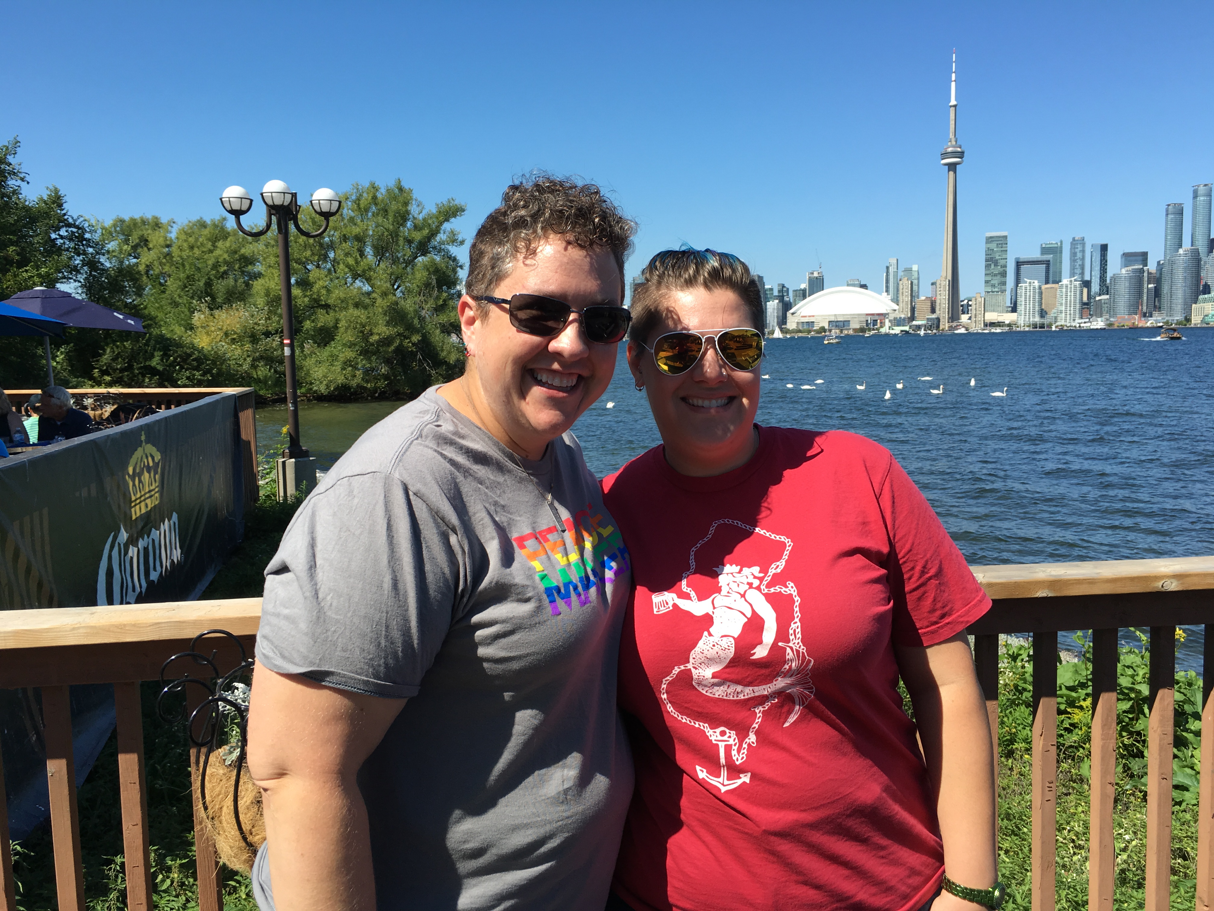 Chris got to pick what we did the next day because I had hijacked Saturday. As always, she chose wisely. We breakfasted at Tim Horton’s, because Canada, and headed to Toronto Island. We skipped the ferry and chose instead to take a water taxi…which meant we were jammed on a pontoon boat with 10 other people. Have I mentioned lately about my fear of drowning, water, and/or boats?