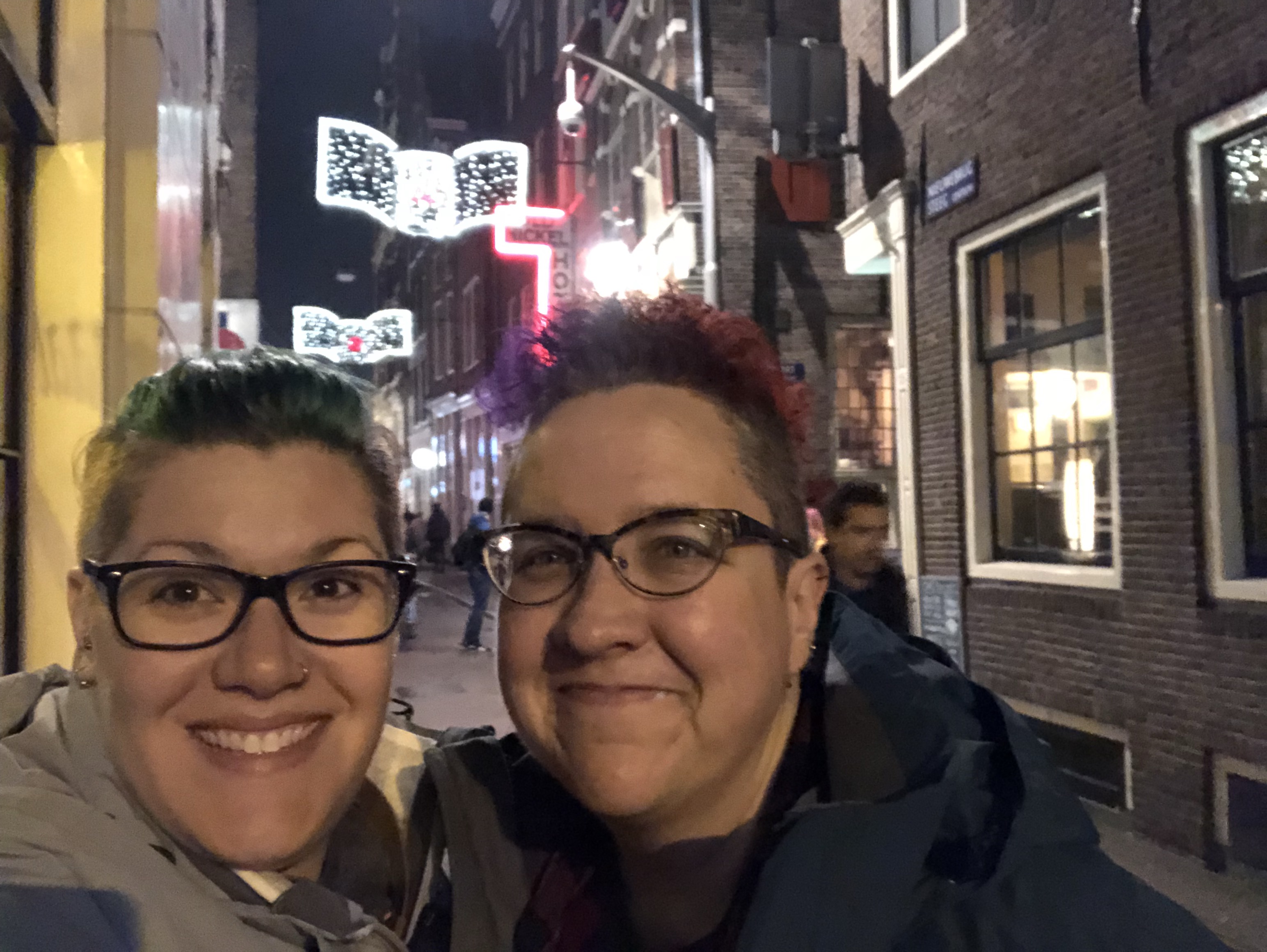 After naps and showers, we looked around Amsterdam a bit, and it was a little terrifying. Bike culture is a big deal here, and unlike in the US, it seems they always have the right of way, regardless of lights, crosswalks, pedestrians, etc. We are both cyclists and fully support bike lanes, cyclists, and everything that goes along with that, but here it’s intimidating and not what we are used to. And someone yelled at us because we crossed in a crosswalk and he came barreling around a corner and got mad at us. I mean, sure, right of way. But there’s no need to be a dick about it.